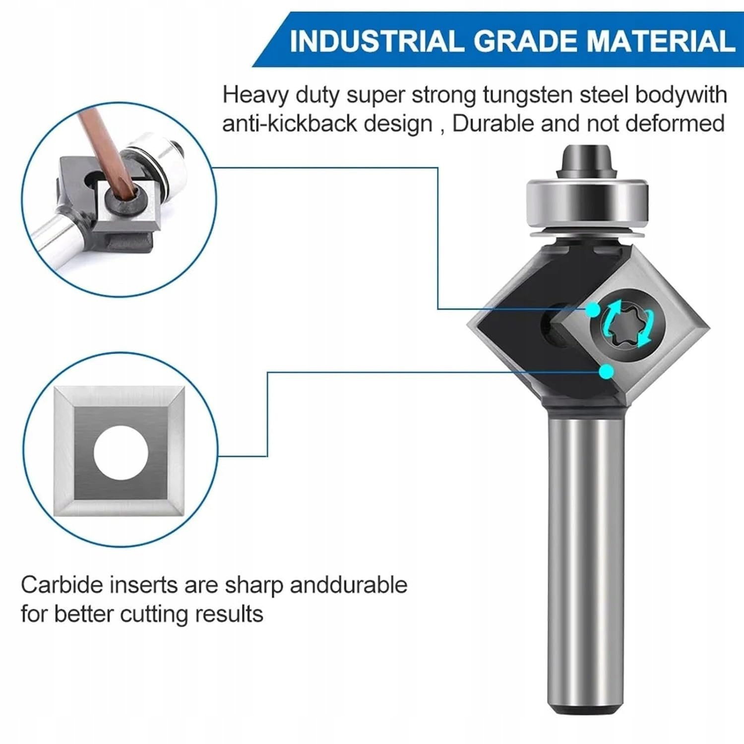 W zestawie frez z łożyskiem oraz zamontowanymi dwoma płytkami, klucz do zamontowania płytek, plastykowe pudełko do przechowania.