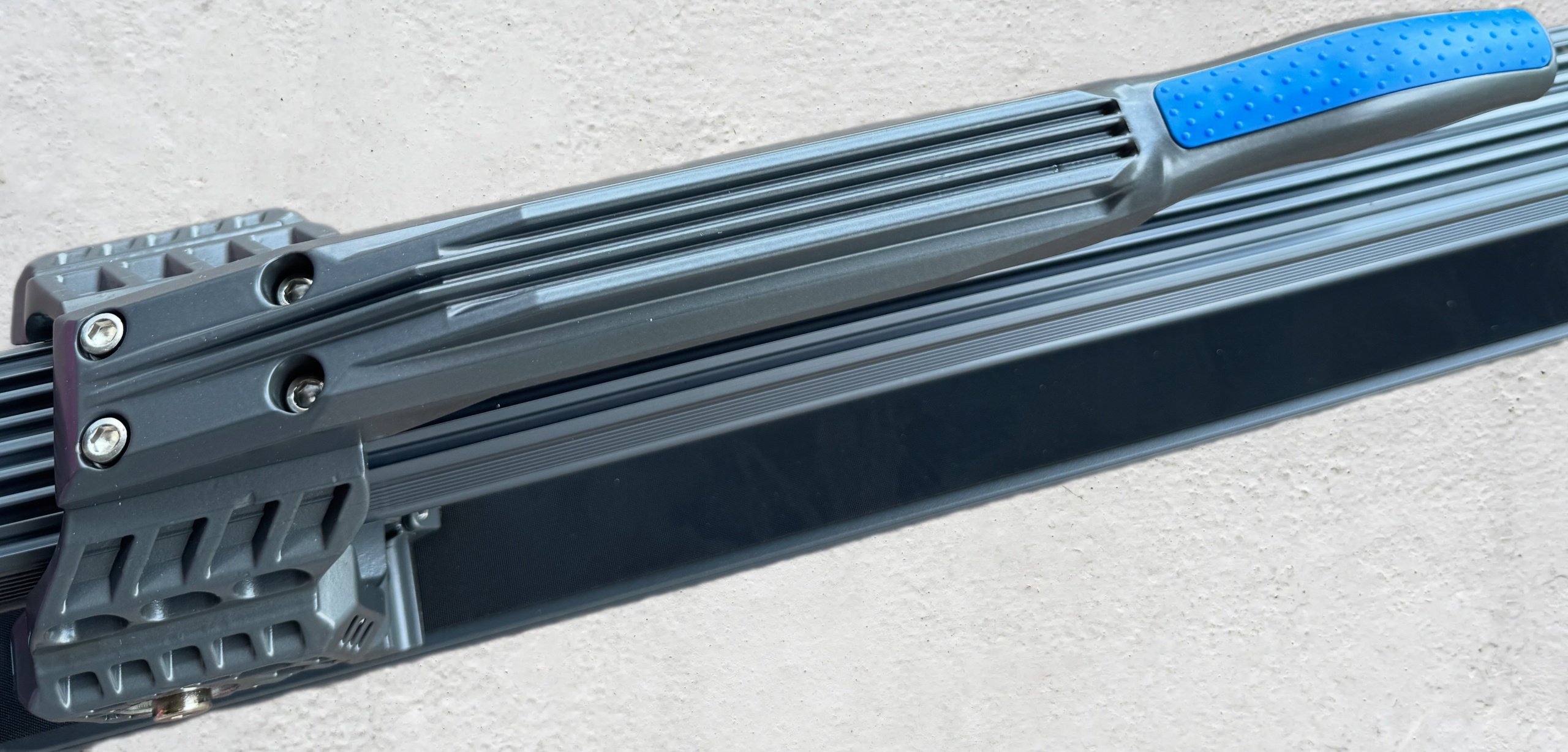 Wbudowana w aluminiowy profil metalowa szyna ze stali łożyskowej, mocowana co 6 cm wraz z kulkowym mechanizmem przesuwu, zapewnia lekkość, niezawodność oraz precyzję ruchu ostrza tnącego.