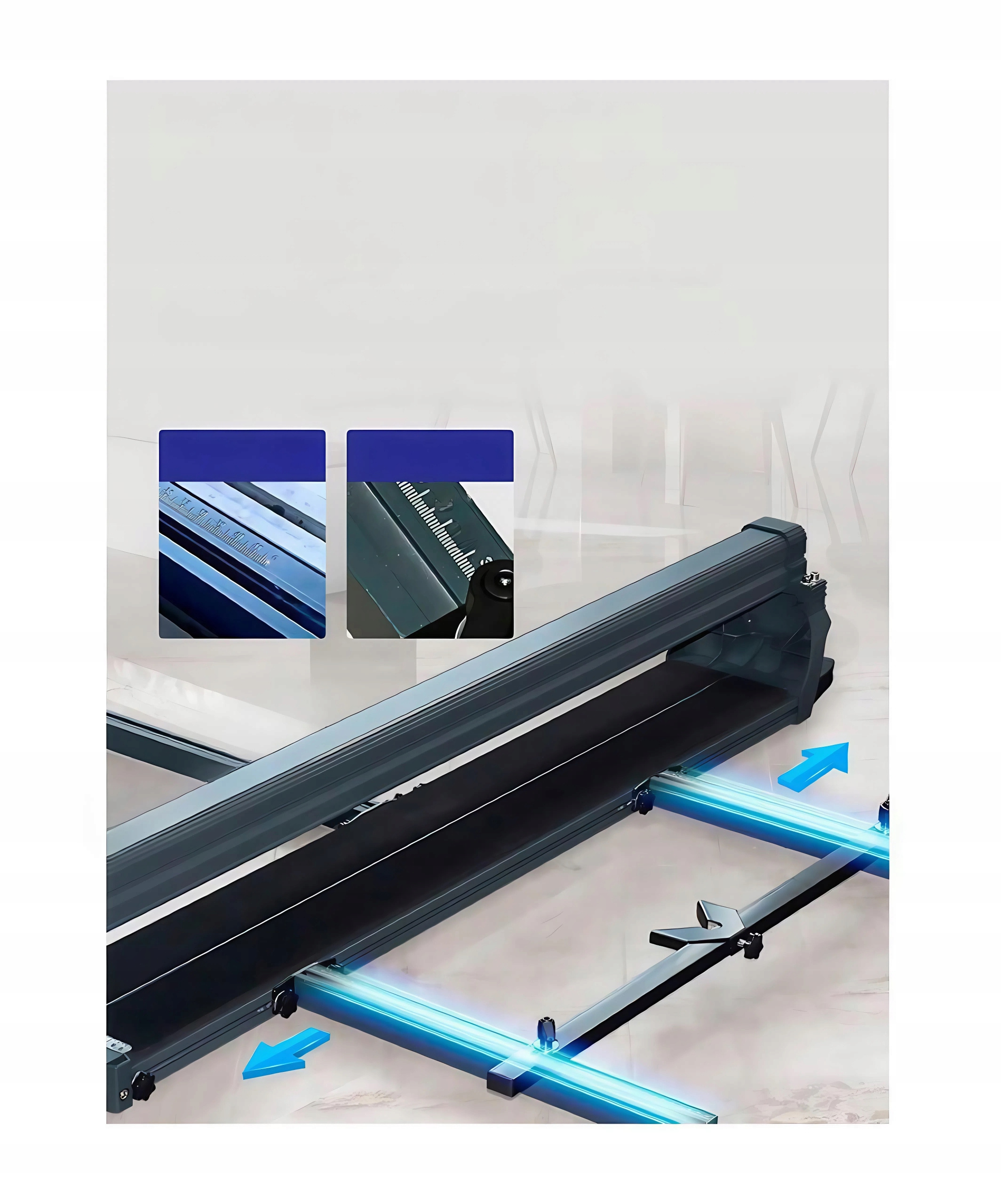 Grawerowana laserowo linijka przemysłowa ze stopu aluminium ma dokładną skalę i może być precyzyjnie przesuwana w lewo i w prawo w celu instalacji.