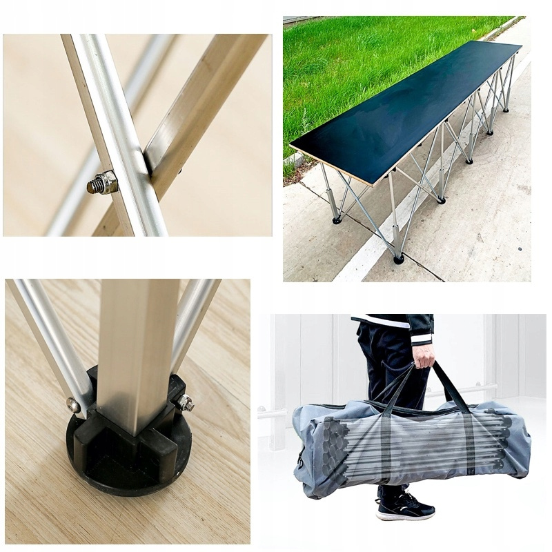 - 10 solidnych, składanych nóg z gumowanymi stopkami zapewniającymi stabilność