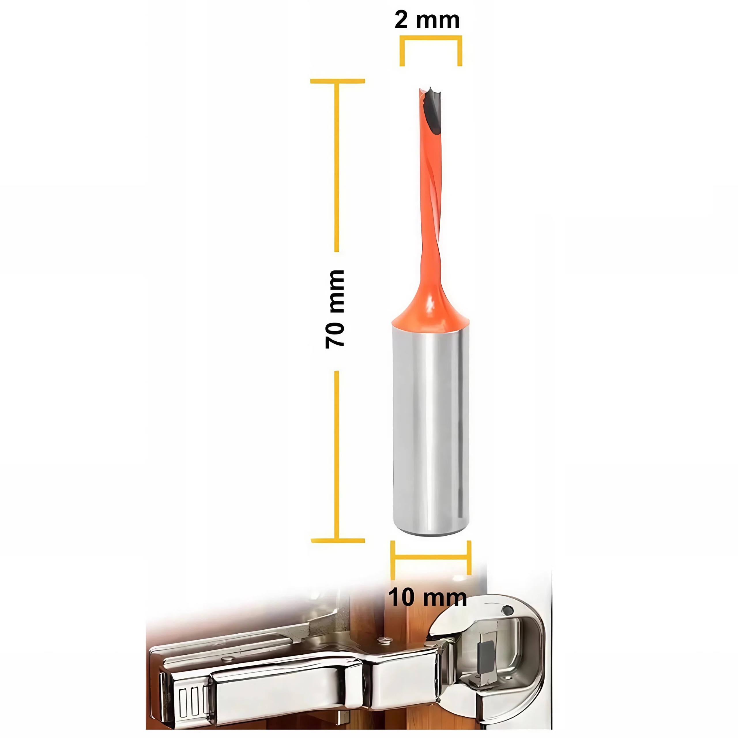 Wiertło do wykonywania otworów nieprzelotowych pod mocowanie zawiasów meblowych i innych rozwiązań. Najlepiej sprawdza się w pracy z MDF, płytą wiórową, płytą laminowaną, sklejką oraz drewnem litym.